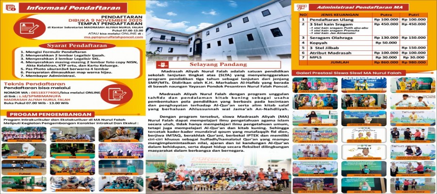 INFORMASI PENERIMAAN PESERTA DIDIK BARU MA NURUL FALAH PONCOL MAGETAN TAHUN PELAJARAN 2026/2027